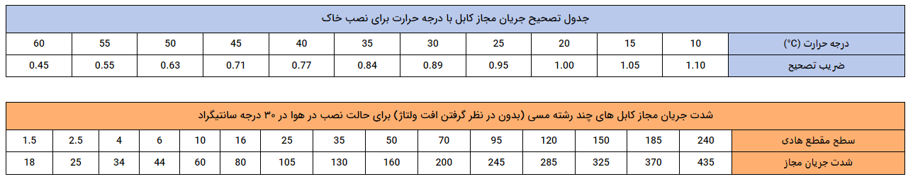 در صورتیکه نیاز به دانلود فایل PDF جدول محاسبات کابل را دارید اینــــجا کلیک کنید